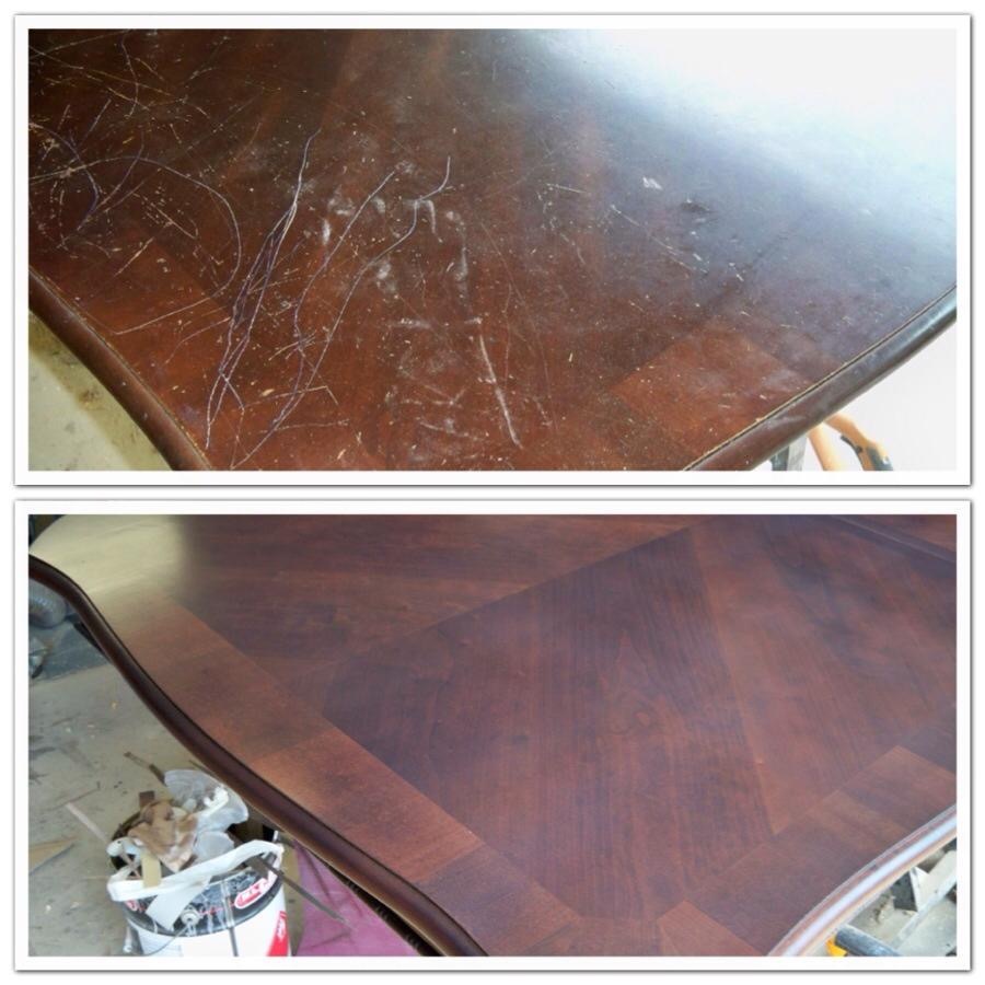 “Contacted John and asked him to come to my house and look at an end table that had been ruined. I put a cheap fan on it and the rubber tips of the fan adhered to the table. The damage was down to the wood. He came over and took a look and said it was a veneered table. I bought the table from Macy’s and I thought it was a quality piece of furniture. I used furniture polish on it (which John told I should have never done). He offered to repair it for $200 but I think he probably should have charged more because he had to completely refinish the entire top which had (don’t know the correct word) a border painted on it. Anyways, after a few weeks it came back better than new and beautiful.”